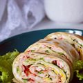 Свернуть лаваш с начинкой к рулет, обернуть пищевой пленкой. Перед подачей охладить в течение нескольких часов.