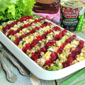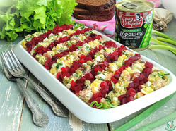 Картофельный салат с сельдью и горошком