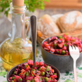 Заправить винегрет нерафинированным подсолнечным маслом, перемешать, попробовать на соль, посолить при необходимости. Все готово.