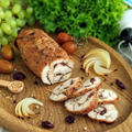 Для маринада смешать оливковое масло, соевый соус, мёд, лимонный сок, паприку, специи и горчицу. Мариновать в нем стейки индейки 1-2 часа. Далее стейки разложить внахлёст, сверху распределить сушёную клюкву (по желанию).