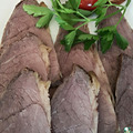 Полностью остывшее мясо вынимаем из рукава, нарезаем ломтиками и наслаждаемся. Мясо нежное, невероятно ароматное, абсолютно не сухое и обладает очень красивым цветом. Если честно, вкуснее пастромы я не ела.