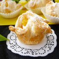 У меня тесто в рулоне. Раскрутить рулон. Тесто немного раскатать. Если у вас тесто замороженное, размораживайте в холодильнике, не на столе. Нарезать тесто на квадраты. Форму для кексов смазать маслом. Каждый квадрат вложить плотно в ячейку (квадраты я еще немного раскатываю).