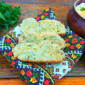 Муку смешать с солью, разрыхлителем, мелко нарезанной зеленью (у меня укроп, петрушка, зеленый лук) и натертым сыром. Добавить молоко и растительное масло. Замесить немного липковатое тесто.