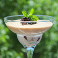 Украсила смородиной и мятой. В один бокал на дно выложила ягоды, а сверху оба слоя. Можете не добавлять кофе и не делить на слои - десерт будет тоже очень вкусным!!! Убираем в холодильник хотя бы на 30 минут. Десерт получается очень нежным. Десерт застывает быстро!