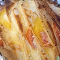 Помидоры нарезать дольками и в каждую складку в лаваше положить по дольке.
