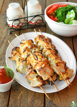 Предварительно разогрейте духовку до 200°С. Готовьте шашлык в духовке около 30 минут. Если есть гриль, то в конце подрумяньте под грилем. С овощным салатом на ужин под холодное пиво или бокал вина это просто сказка! А какой получается лук! Пикник дома тоже может быть вкусным.
