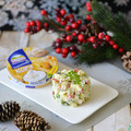 Готовим заправку. В миску кладём вареный желток, горчицу и плавленый сыр. Разминаем тщательно вилкой в однородную пасту.