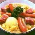 1 кг квашеной капусты, 50 г вареной ветчины, 2 ч.л. зерен тмина, соль, сушеный зеленый перец, 100 г маринованного красного перца, 16 маленьких сосисок, 6 яиц, 120 г тертого сыра «Гауда», 1 ч.л. молотого красного перца, 2 ч.л. рубленой ветчины Полностью слить с капусты рассол. Ветчину порубить кубиками и с капустой потушить в сковороде, приправить тмином, солью и перцем. Стручки перца нарезать полосками, вместе с очищенными сосисками выложить поверх капусты. Взбить яйца, смешать с тертым сыром, держать на среднем огне под крышкой, что бы яичная масса затвердела. Посыпать рубленой зеленью и красным перцем.