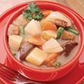 500 г говядины 500 г картофеля 1 кг стручковой фасоли 1 бульонный кубик Соль, перец, мускатный орех 1 пучок петрушки В кастрюльку налить 2 л холодной воды. Мясо промыть и дать стечь воде, затем нарезать средними кусками. Положить мясо в воду, варить и когда закипит, снять пену и сбавить жар, варить на слабом огне 90 мин. Картофель очистить и нарезать мелкими кубиками. Фасоль промыть, очистить от черенков, нарезать косыми кусочками. За 20 мин до готовности мяса, положить в бульон картофель и фасоль, бросить лавровый лист. Мясо вынуть, остудить, нарезать небольшими кубиками и добавить в рагу. Раскрошить кубик и заправить рагу щепоткой мускатного ореха. Посолить и поперчить. Разложить по тарелкам и посыпать рубленой петрушкой.