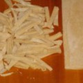 300 г муки 2 яйца 2 ст.л. воды Соль Просеять в миску муку, сделать сверху углубление, куда влить взбитые яйца и воду, посолить и замесить крутое тесто. Раскатать на тонкие пласты, дать немного подсохнуть, затем скатать в рулеты и нарезать поперек тонкими полосками. Варить только после того, как лапша просушится.