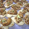 250 г голландского сыра 100 г повидла 100 г меда 100 г орехов Сыр нарезать небольшими квадратиками, опустить в подогретый мед на 5 мин., вынуть, дать стечь меду. Склеить квадратиками повидлом, обмазать тем же повидлом и обильно посыпать орехами.