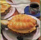 На 4 порции разрежьте вдоль пополам 2 ананаса (примерно 800 г каждый). Осторожно отделите от кожицы фруктовую мякоть и мелко нарежьте. Нагрейте духовку до 200°. Плодовую мякоть перемешайте с нежирным творогом (300г), приправьте 1 ст. ложкой сахара и 2 ст. ложками рома. Наполните массой половинки ананасов. Взбейте 4 яичных белка и перемешайте с 2 чайными ложками сахарной пудры. Наполните кондитерский мешочек, красиво выдавите на начинку взбитые белки, поставьте на противень в духовку половинку ананаса и запекайте массу безе 5 минут до золотистого цвета. По желанию украсьте вишней.