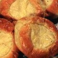 500 г муки 3/4 ст. молока 20 г дрожжей 75 г сахара 3 желтка 60 г масла Творожная масса: 250 г творога, 50 г сахара, 1 желток, ванилин Замесить дрожжевое тесто. Творог растереть, добавить взбитый с сахаром желток, ванилин и тщательно все растереть. Когда тесто поднимется, раскатать его в пласт толщиной в 1 см. Вырезать стаканом лепешку и смазать взбитым белком. У другой такой же лепешки вырезать рюмочкой середину и положить на первую лепешку. Приготовленные таким образом булочки поставить в теплое место расстояться. Перед выпечкой заполнить углубление в булочке творожной массой, смазать яйцом и выпекать 20-25 мин.