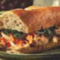 4 лука-порея соль 1 пучок петрушки 2 длинных батона 250 г жирной сметаны 300 г сыра-гауда нарезанный ломтиками 12 ломтиков бекона Порей очистить и отделить зеленые стебли, 5 минут бланшировать в подсоленной воде белые стебли, после кипяток слить и стебли обдать холодной водой, обсушить. Петрушку порубить. Батон разрезать вдоль пополам, вынуть мякиш, батон смазать сметаной и выложить сыром. Нагреть духовку до 200° С. Лук-порей обернуть беконом и вложить в батон, который после обернуть фольгой и на 30 мин поместить в духовку. Подавать, нарезав кусочками.