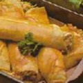125 г молока перец, соль 1 пучок петрушки 300 г филе свинины 4 ст.л. муки 400 г шампиньонов 250г смеси натертой моркови и огурцов 1 пучок зеленого лука 50 г жира для жаренья Смешать молоко, муку, яйца, оставить тесто на 30 мин. Мясо нарезать тонкими полосками, очищенный лук кольцами, грибы на четвертинки. Мясо обжарить в 25 г жира до хрустящей корочки, добавить лук, грибы и 5 мин. тушить на среднем огне, нарезать петрушку и добавить к грибам вместе со специями. В оставшемся жире испечь 4 тонких блинчика, наполнить их фаршем, можно подавать с листовым салатом.