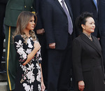 Трампы прибыли в Китай в продолжение своего азиатского турне. Мелания вышла в свет в платье с китайским орнаментом стоимостью 3 тысячи долларов.