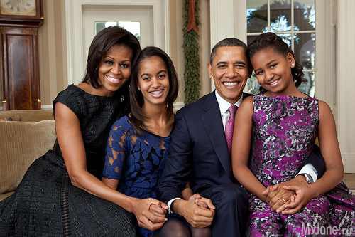 Мишель и Барак Обама с дочерьми