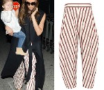 Вы знаете о том, что хит весны – широкая и узкая полоска? Её использует в своём весеннем гардеробе законодательница мод, икона стиля Виктория Бекхэм. На днях «перчинку» видели во время перелёта из страны в страну. На ней были одеты брюки в модную полоску. Их дополняло чёрное пальто без рукавов.