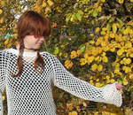 Повторить этот ажурный блузон по силам даже совсем неопытной мастерице. Для него не нужны выкройки и расчеты, плотные части связаны столбиками без накида, основной узор – очень пластичная косая сетка – связан столбиками без накида и воздушными петлями. Пряжу можно использовать любую, тонкую, толстую, хлопковую, синтетическую, шерстяную, фантазийную. Из тонких блестящих ниток получится прекрасное дополнение к вечернему наряду, из пряжи средней толщины – повседневная вещь, из толстых ниток – замена шали или пончо.