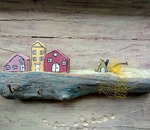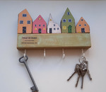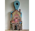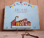 Заходя в квартиру с продуктами в сумках, не могла определиться с местом куда их определить пока снимаешь обувь и одежду. Решила оформить «временную пристань» на двух крючках, закрепленных на небольшой доске в виде домика.