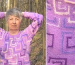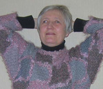 Техника лоскутного вязания спицами оказалась технически не очень сложной и очень удачной, она позволяет выполнить многоцветное изделие с уникальным узором и сочетанием цветов. В этом джемпере к основной сиреневой нити добавлены небольшие кусочки разных цветов купленной на вес фасонной нити. В изделии использованы элементы трех форм: маленький квадратик, прямоугольник из двух квадратиков и элемент из трех квадратиков с тремя диагональными линиями убавления.