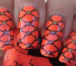Маникюр в стиле вуаль называют еще капроновым или в стиле колготок. Это название он получил потому, что ногти действительно похожи на ажурные тонированные колготки. Сетка на ногтях украшена черными цветами и точками, а по периметру дизайна добавлена темная окантовка.