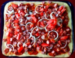 Дала тесту приподняться и разложила на листе. Поверх теста смазала томатом. Добавила кусочки овощей: красный сладкий перец, луковые кольца, кусочки сосиски, отварные шампиньоны, кусочки помидора. Посолила, поперчила... Тряхнула разных специй по вкусу. Запекла в духовке при Т* 200* приблизительно... Здесь пояснения к выпеканию:... Читать далее» |