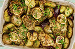 Продолжаем готовить полноценные блюда на ужин в духовке. В этот раз у нас курица с картошкой, лимоном и большим количеством чеснока! Блюдо получается очень вкусным, а главное – оригинальным! Приятная и нежная кислинка от лимонного сока дополняет вкус ароматного картофеля с курицей, ну а чеснок, как всегда, неповторим! Его аромат просто восхитителен.