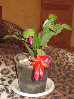 Зацвела маленькая шлюмбергера (декабрист). На работе случайно отломила сегментик от взрослого растения, когда открывала окно, выбросить стало жалко.