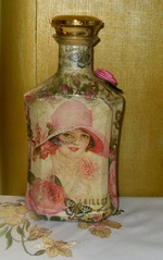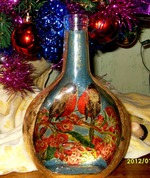 Бутылка декоративная, выполнена в технике декупаж. Может использоваться как по прямому назначению, так и как предмет интерьера. Единственный экземпляр, цена 500 рублей.