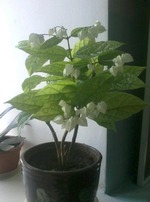 На работе у нас очень много растений, думаю, не одна сотня, если считать поштучно. И переодически отдают новые. Недавно появились две небольших лианки, которых в инете опознали как клеродендрумы госпожи Томпсон. Там же я вычитала, что они должны красиво цвести, но для этого