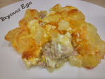 Ингредиенты - 500 гр мяса - 1 кг картофеля - 2 репчатого лука - соль и перец по вкусу - 5 ст. л. майонеза (2ст. л... Читать далее» |