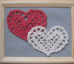 К Дню Влюбленных приятно готовить маленькие сувениры. Небольшое панно/салфеточка может украсить интерьер/романтическую встречу. Одно такое сердечко можно вывязать на шапочке или шарфе для любимого человека. Панно с сердечками связано спицами из ниток двух цветов с использованием двух клубочков (техника интарсия).