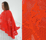 Шаль «Алый вьюнок». Вязание крючком. Филейная сетка